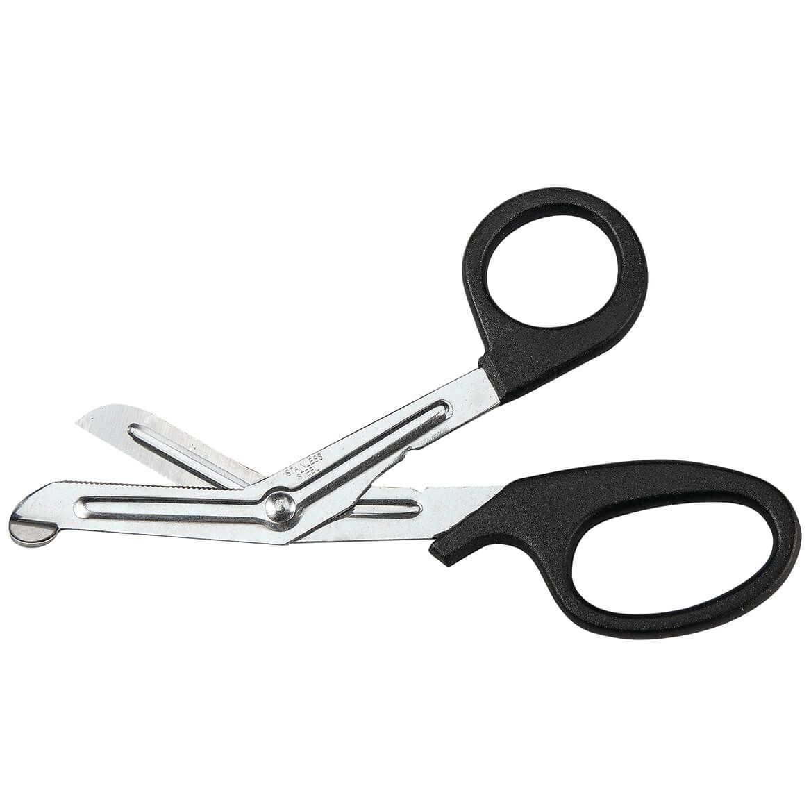- Discover the convenience of shear versatility! The perfect craft and utility scissor, these Multipurpose Shears with serrated edge are ideal for paper crafts and gift wrapping, gardening and herb cutting, and tons of other uses around the house. And thanks to their smooth, round safety tips that won't harm skin, these utility shears are perfect for cutting medical tape and bandages too. Carbon steel blades with durable plastic comfort-grip handles. Craft scissors measure 6" long x 2 3/4" wide.