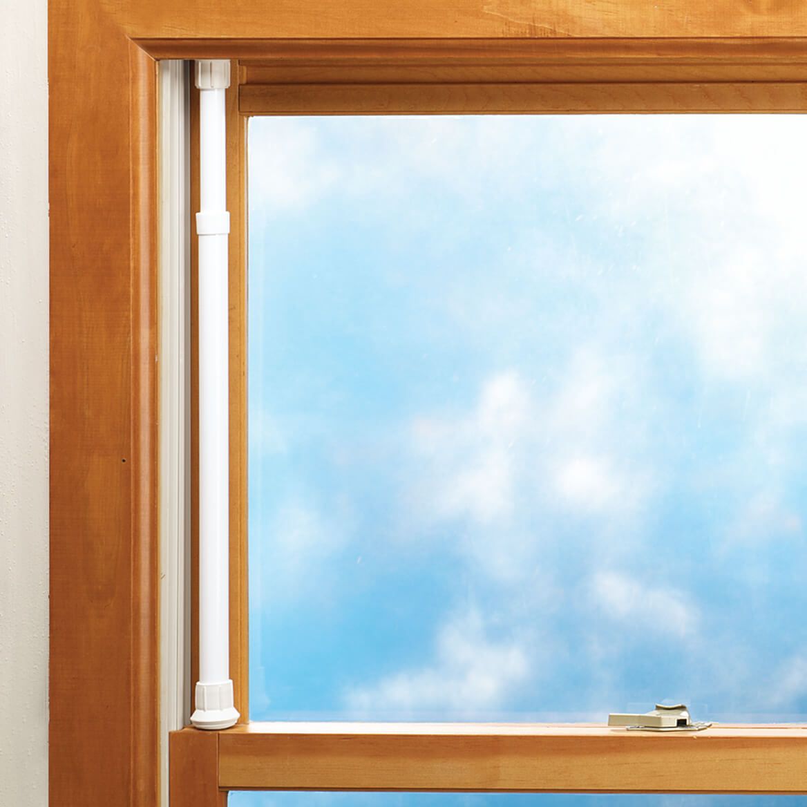 - Steel Adjustable Sliding Door or Window Security Bar stops windows and sliding doors in their tracks—making your home safer by preventing doors and windows from being opened from the outside. For patio doors, simply lay the sliding door security bar horizontal in the track and twist to adjust length. To prevent double-hung windows from opening, place vertically in upper section and adjust length to fit. Specify size: Small (18"-32" long) or Large (26 1/4”-48” long). Window and door bar measures 3/4" dia. to fit most windows or sliding doors. Alloy steel/polyvinyl chloride. Wipe clean. By LivingSURE™.