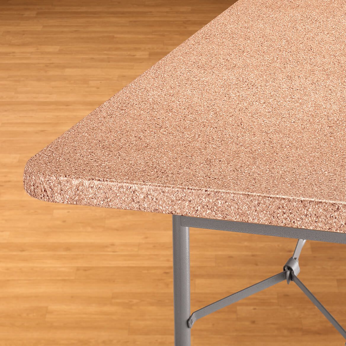 - Hard-to-find banquet table covers are here! Granite elasticized banquet table covers come in 3 banquet sizes and card-table size, all designed in fleece-backed, wipe-clean vinyl with stay-put elasticized corners. Whether you’re looking for a cost-effective solution to turn up the volume at your next catering event or want to give your kitchen or patio table the look of real granite without breaking the bank this granite vinyl table cover has you covered. Give your table surfaces an extra layer of protection with an easy-to-install, easy-to-clean solution like this elasticized banquet table cover designed to fit snugly over your square or rectangle furniture. Perfect for use in both indoor and outdoor dining spaces, this granite tablecloth instantly adds elegance to your décor. The heavy-duty vinyl construction makes clean up a breeze and protects surfaces from scratches and dings. Plus, the fleece backing provides an extra layer of protection over glass tabletops. Make Miles Kimball your first choice for hard-to-find table covers and tablecloths like this elasticized banquet table cover that protects surfaces and updates your dining areas with the look of real granite. Square fits tables 36"x36". Small oblong fits table 48"x24". Medium oblong fits table 60"x30". Large oblong fits table 72"x30". Imported.