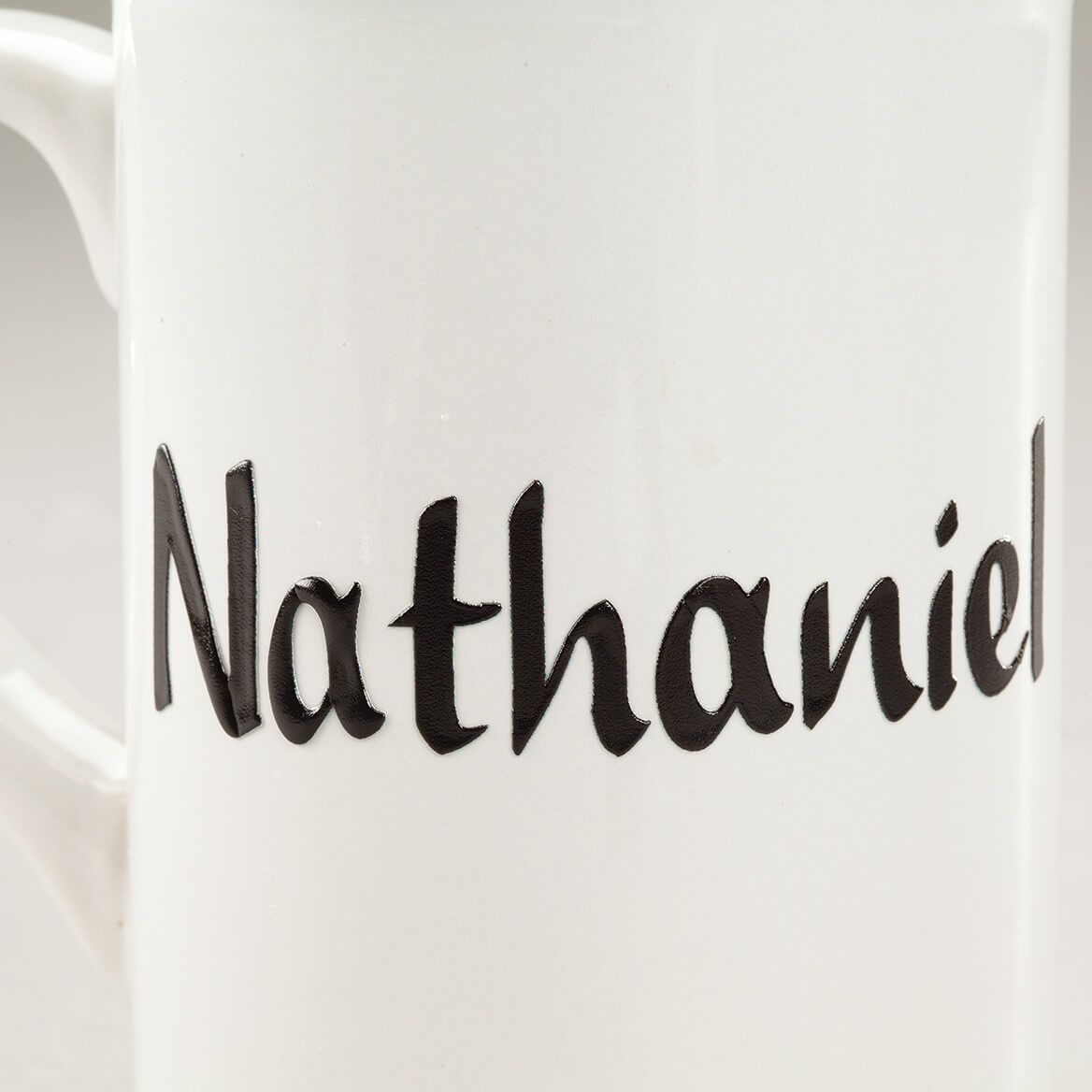 These personalized coffee mugs are great for offices, where multiple coffee mugs can often cause confusion. They also make great gifts for holidays, housewarming gifts or other special occasions. Add this personalized coffee mug to our other personalized drinkware selections like our Personalized Soup Mug, 22 oz. or our Personalized Tea Bag Mug — all are best-sellers at here at Miles Kimball!