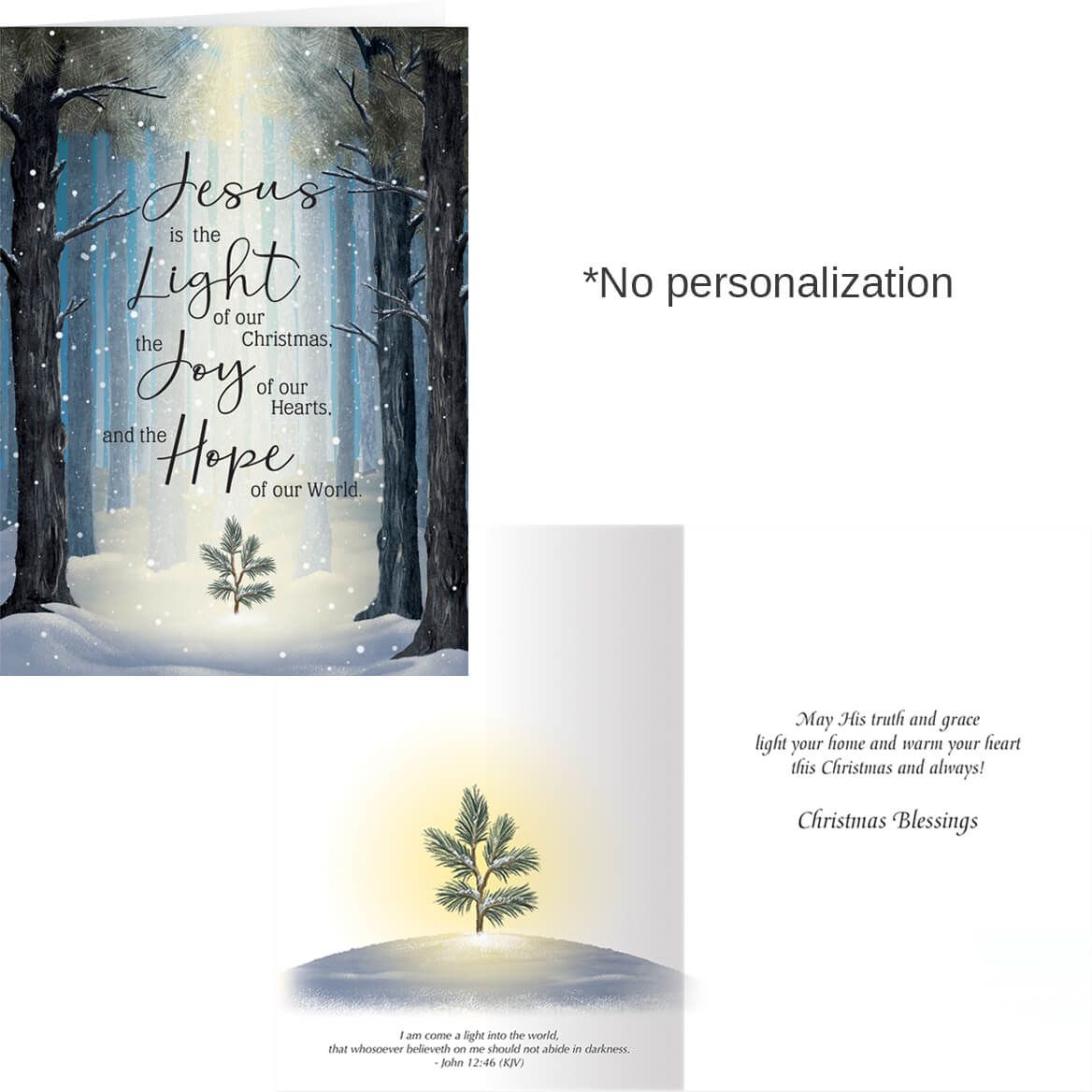 The "He is the Light" Personalized Religious Christmas Cards aren't your average cards. These cards go above and beyond the standard greeting card. With this unique Christmas card, you can show your friends and family how much you care about them. Celebrate this holiday season by remembering the special times you've had together and making new memories that will stay with you forever. Each card isn't just paper; it's a powerful message that speaks of the divine love, the joy of Christmas, and the eternal hope we hold.