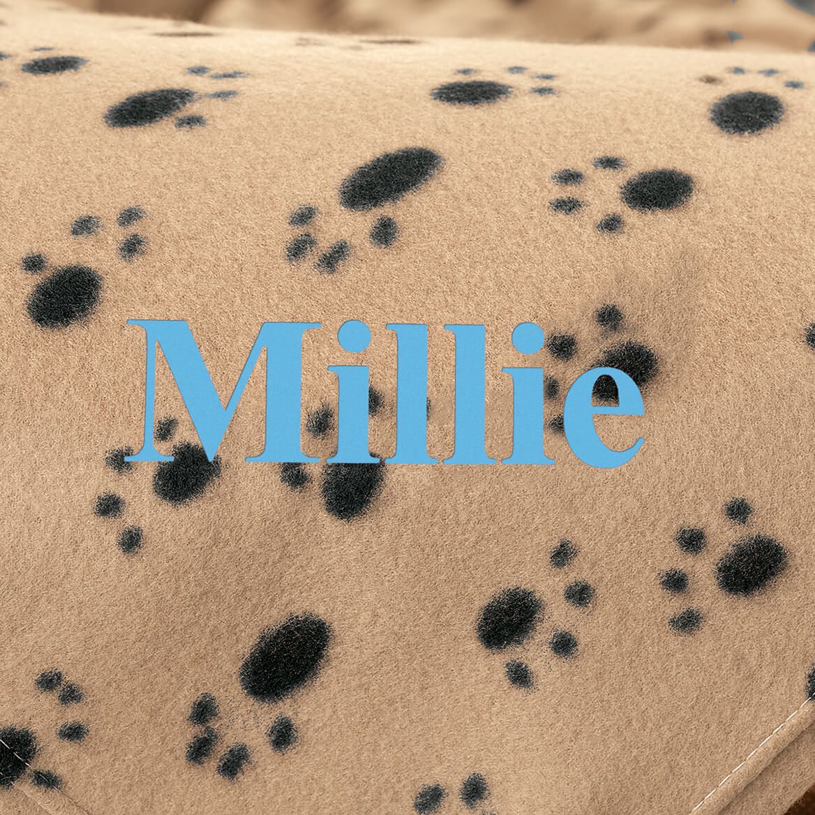 Your cat, dog, bunny or other furry friend will snuggle in for a warm, cozy nap while you protect furniture from claw wear and tear (not to mention all that fur). These custom paw print blankets feature an adorable paw-print pattern. In addition, our easy-care 100% polyester fleece pet blanket machine washes and dries in a jiffy. Specify name; limit 1 line, up to 10 letters/spaces. Our custom paw print blanket measures 60" long x 40" wide. This charming blanket is a perfect gift to give a new pet mom or dad in your life. Consider creating a pet care basket with this personalized pet blanket, along with other pet care essentials, for a gift they won't soon forget.