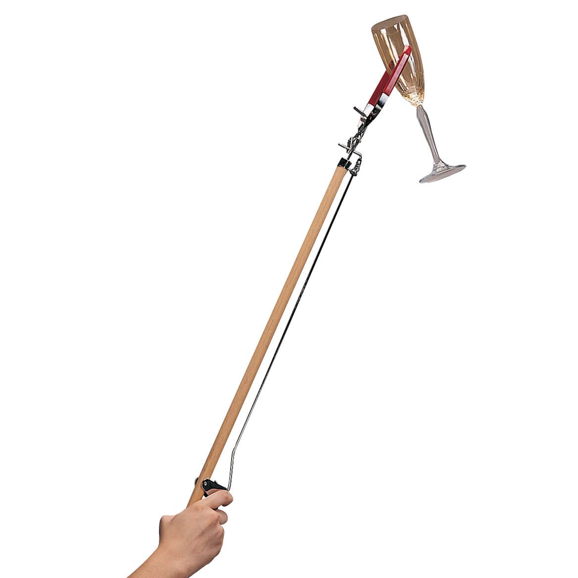 - Instantly extend your reach by nearly 3 feet. Safely grasp hard-to-reach items with the reach extender. The grabber tool has a lightweight wooden rod with sturdy rubberized metal “fingers” and a spring action handle. Magnetic tip attracts needles and nails. Extension grabber is 32" long.